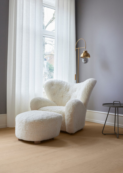 The interior is defined by carefully curated objects, Danish design and striking colours that please the eye and contribute to an atmosphere of wellness. A central element in the renewal of the flat was the choice of Dinesen floors in Layers Oak Classic. The floors form a neutral canvas for the owner’s personality, including colourful and exuberant works of art.