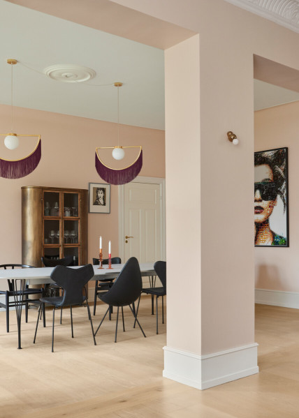 This old, classic building in Frederiksberg in Denmark once served as a factory making snap fasteners and zips. In 1855, when the original factory building was constructed, production facilities were located in the basement, while the factory workers were said to live on the remaining floors. Today, the building is transformed. Welcome to a beautiful, renovated townhouse flat with vibrant art, soothing colours and Dinesen Layers Oak.