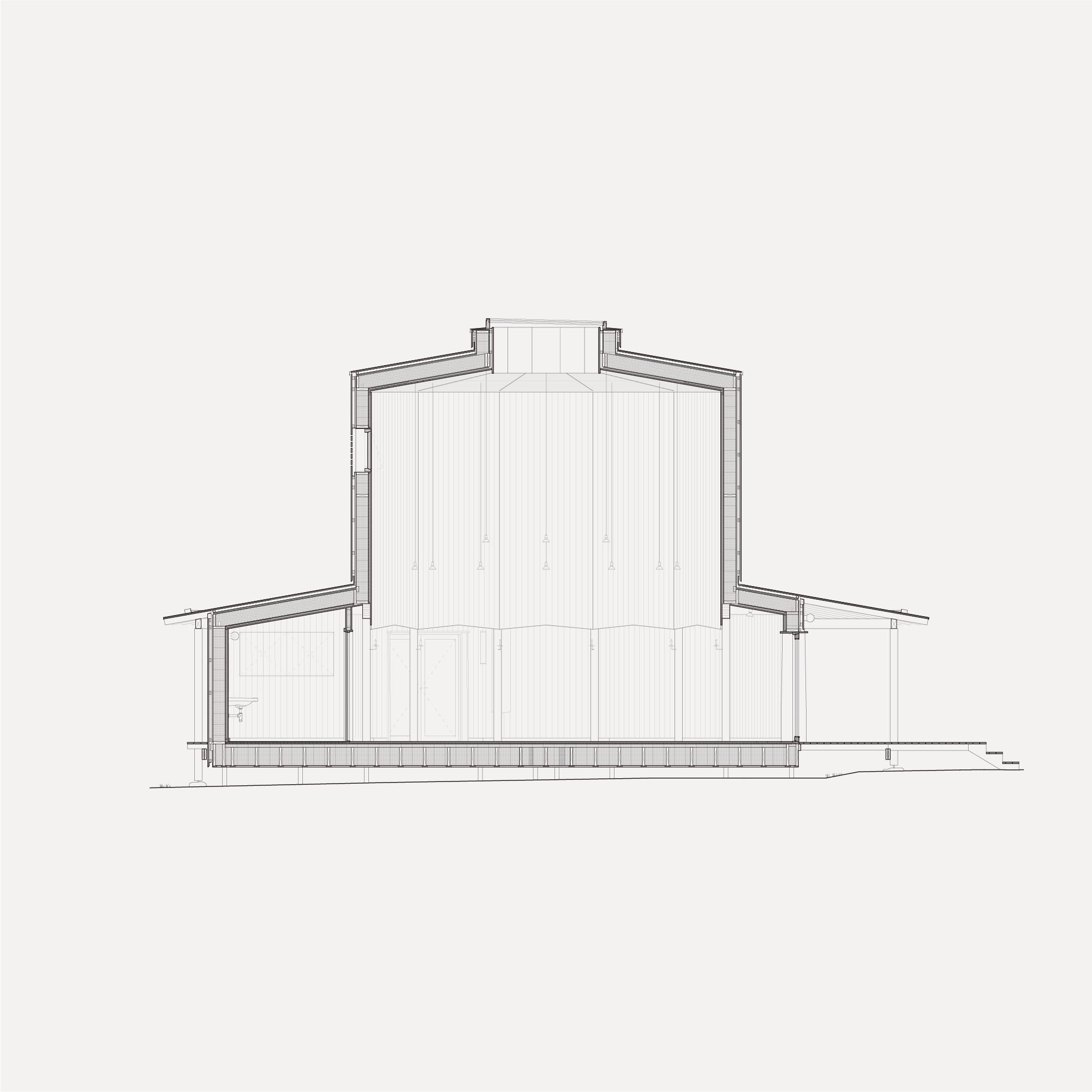 The design emerges from a brief calling for a temporary church in Nordhavn (North Harbour district)—a growing Copenhagen neighbourhood in flux, without permanent ecclesiastical infrastructure. Rather than mimic traditional church typologies, the proposal reimagines the sacred space as something both archetypal and adaptable: a tent-like structure that could be disassembled, moved, and reassembled as needed, yet retain its spiritual gravity.