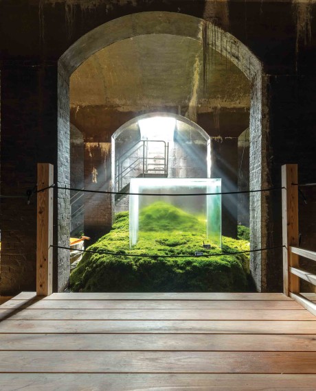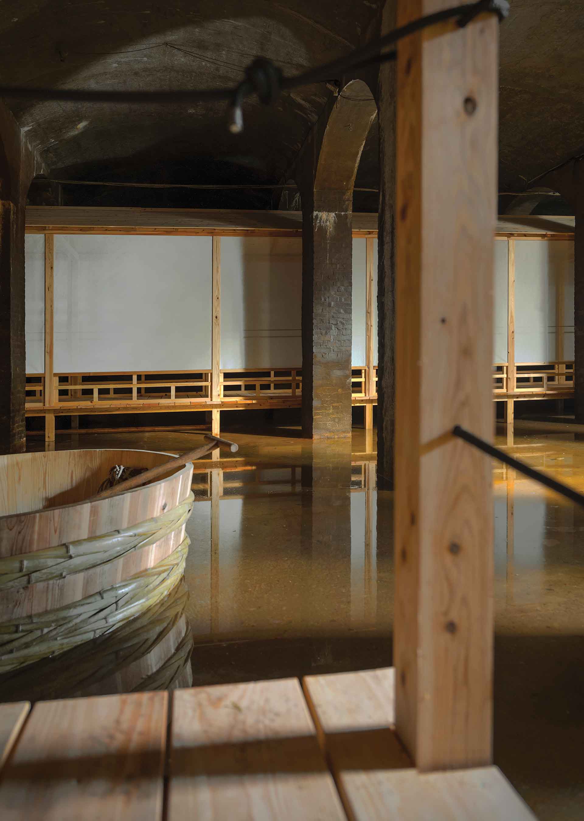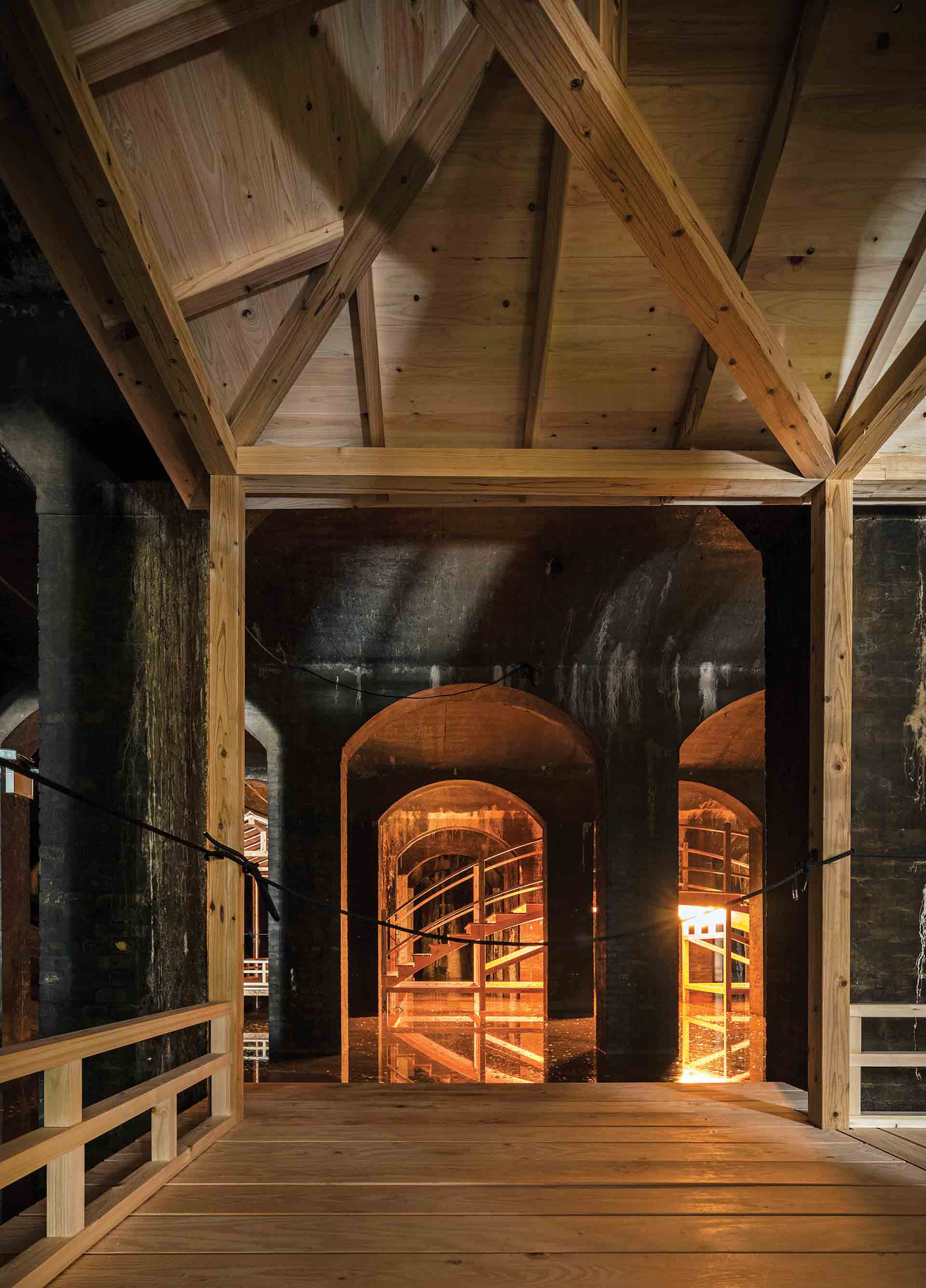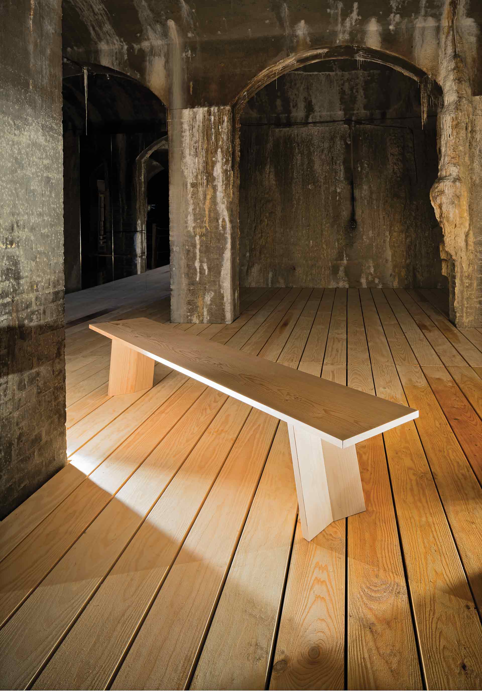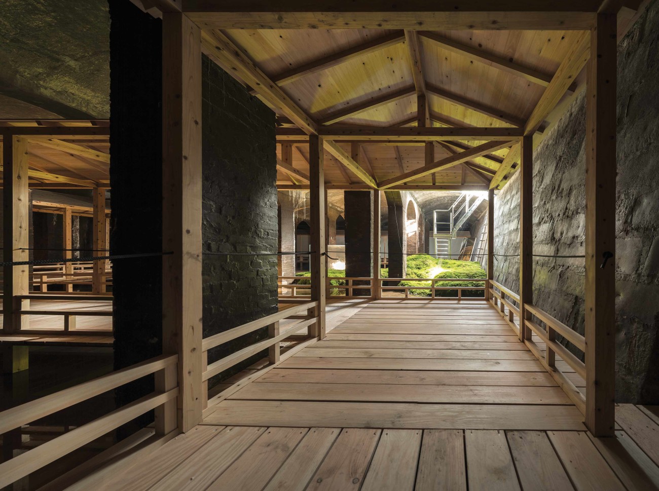 In 2017, Japanese architect Hiroshi Sambuichi created a breath-taking underground world in The Cisterns, honouring the natural elements of air, water and daylight. For the exhibition, we contributed with solid Douglas planks for the elegant wooden walkway.