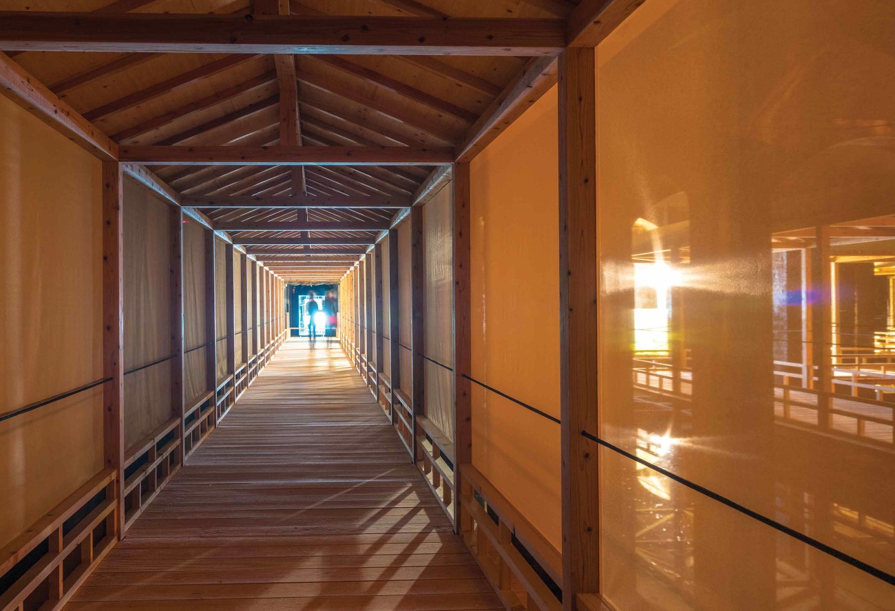 When crossing the underground sea, visitors walked an interpretation of the Japanese Itsukushima Shrine on the island of Miyajima. The elegant wooden walkway featured an inspiring meeting between Danish and Japanese design- and material traditions, as the construction was made of imported Japanese cedar and cypress, while the cladding was in solid Dinesen Douglas planks. All made in-situ by a team of eight master carpenters from Japan.